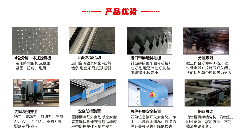 2、裁剪精度高,自動(dòng)化裁布機(jī)擁有智能誤差補(bǔ)償系統(tǒng),重復(fù)切割0誤差。